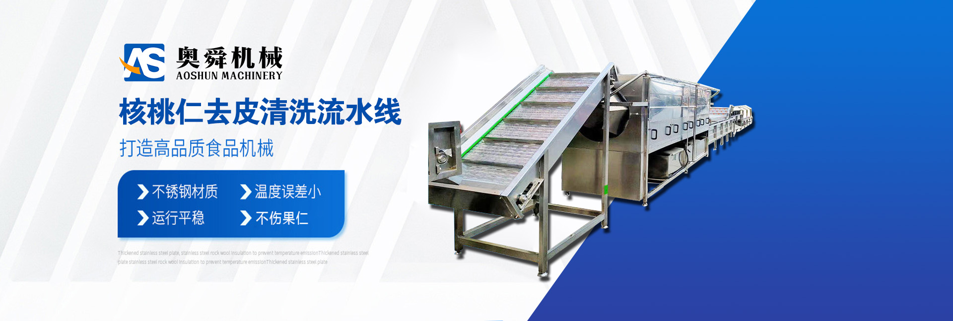 奧舜機(jī)械 【核桃仁去皮機(jī)】打破了核桃仁深加工過程中的困擾,純物理脫皮方法,專門針對核桃仁表皮的沖洗,代替了傳統(tǒng)的化學(xué)泡制去皮,使產(chǎn)品更安全放心,連續(xù)式工作,操作簡單,去皮率高、破損率低,自動化程度高,節(jié)省人工,可配套烘干箱使用。